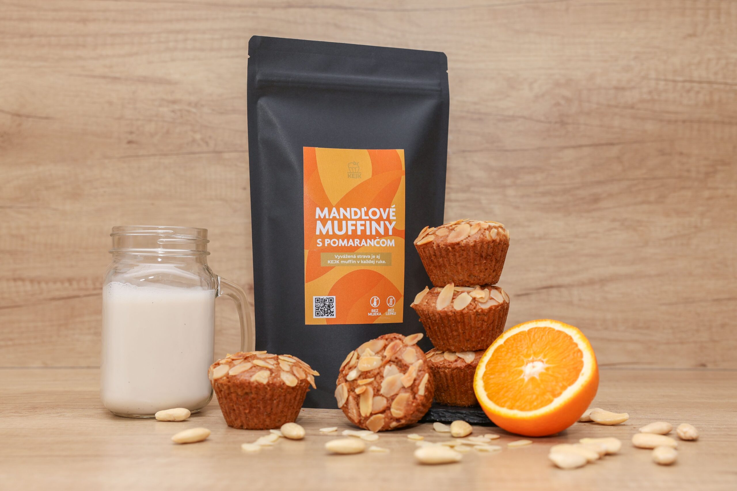 Ku zakúpenej KEJK zmesi na pečenie – mandľové muffiny s pomarančom pridáte len:
